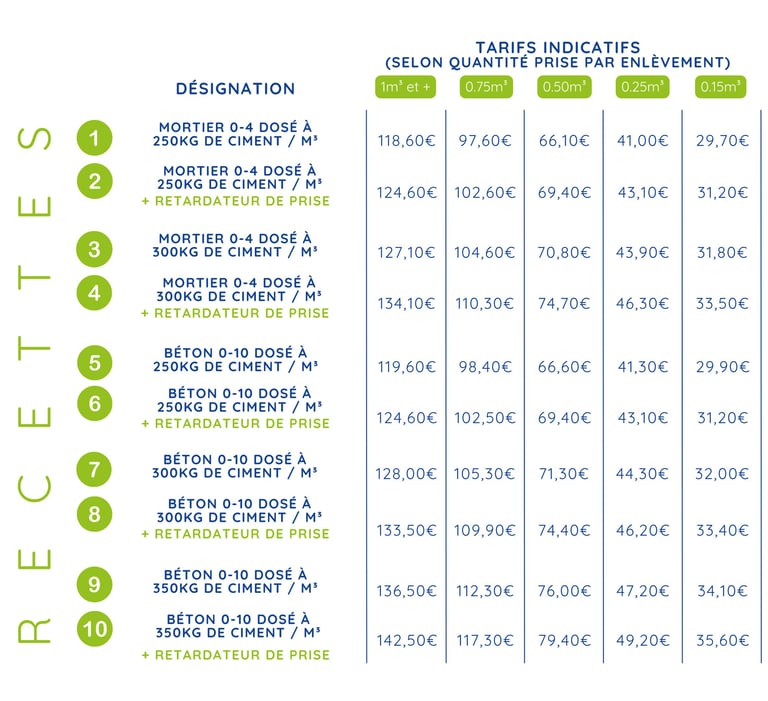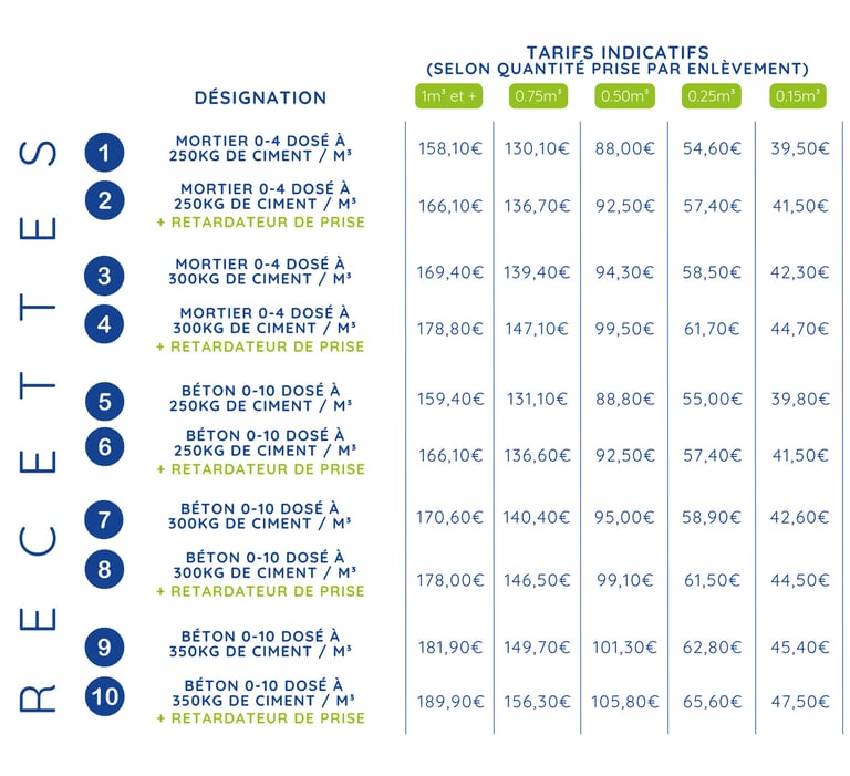 Chez SELFBETON Evreux, nous mettons à votre disposition des recettes de béton prêt à l’emploi et de mortier professionnel, adaptées à tous vos besoins : fondations, chapes maigres, dalles extérieures, ou encore bordures de jardin. Notre engagement : vous proposer des solutions de qualité à des tarifs transparents et compétitifs.